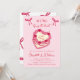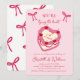 Celebre o seu próximo "Eu Aceito" com estilo com este Convite de Noivado We're Tying the Knot Coquette Cherry, perfeito para uma celebração divertida e elegante! Este convite combina feminilidade clássica com um toque de diversão, apresentando um delicado motivo de bolo de cereja, tons rosa suave e tipografia graciosa. O design encantador captura a essência de um casal moderno que ama um pouco de doçura com um toque vintage.