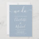 Elegante convite de casamento azul empoeirado com nomes em estilo de assinatura, este convite de casamento azul empoeirado e branco pode ser personalizado com suas informações em letras brancas elegantes. Criado por Thisisnotme©