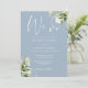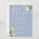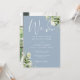 Este convite de casamento floral botânico elegante em azul poeirento pode ser personalizado com suas informações em tipografia chic com sua foto especial no verso. Projetado por Thisisnotme©