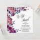Usando uma fonte elegante, moderna e com curvas, criei uma sobreposição gráfica que diz "Nós nos Casamos", para complementar a sofisticada fonte serifada em maiúsculas usada para seus detalhes. A mesma "fonte fancy" foi usada para colocar a palavra "Amor" no verso. O texto é complementado por flores ousadas e ricas em aquarela em tons de rosa e roxo. Todas as camadas foram adicionadas separadamente e deixadas desbloqueadas para lhe dar um controle significativo de design; faça as modificações necessárias para criar o cartão que você imagina. Por favor, não hesite em entrar em contato comigo se precisar de ajuda para personalizar ou tiver pedidos especiais. // 119 //