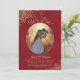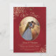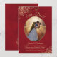 Este convite de recepção de casamento ou festa de depois apresenta um título elegante em escrita "Nós Fizemos!". Tem um design simples, porém elegante, com letras douradas em escrita fancy sobre um fundo de mármore em cor vermelho-carmesim, e sua foto em uma moldura oval rodeada por floreios e espirais ornamentais em fólio falso. Perfeito para casamentos secretos ou celebrações que acontecem após uma cerimônia privada. Uma ótima maneira de convidar familiares e amigos para celebrar seu amor.