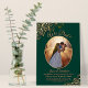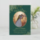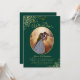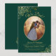 Este convite de recepção de casamento ou festa de depois apresenta um título elegante em caligrafia que diz "Nós Fizemos!". Tem um design simples, porém elegante, com letras douradas em uma fonte sofisticada sobre um fundo verde esmeralda, e sua foto em uma moldura oval rodeada por espirais e floreios ornamentados em fólio dourado. Perfeito para casamentos secretos ou celebrações que acontecem após uma cerimônia privada. Uma ótima maneira de convidar sua família e amigos para celebrar seu amor.