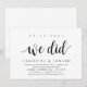 Cartão de convite temático Moderno Rústico, com fonte preta (e título do cartão: nós fizemos). É perfeito para o seu chá de noivado pós-casamento / festa de celebração pós-casamento. Adicione seus detalhes em fonte / letra preta correspondente.