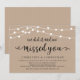 Bela Iluminação de Corda de Fazenda Rústica Moderna, fonte Script preta em Fundo Kraft Marrom, Anúncio de Casamento Fugitivo, cartão de convite (Nós fizemos isso e sentimos sua falta). Isso é perfeito para a recepção do seu casamento e festa de celebração pós-casamento. Adicione seus detalhes na mesma fonte / letra.