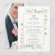 Com folhas delicadas em aquarela, este convite elegante pode ser personalizado com as informações do seu evento especial e foto no verso, em tipografia moderna e elegante. Perfeito para qualquer celebração de casamento, incluindo renovação de votos, recepção de 1º aniversário, festas pós-fuga ou para aqueles que tiveram um casamento minimalista e agora estão prontos para festejar novamente. Criado por Thisisnotme©