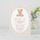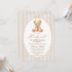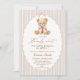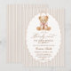 Celebre seu pequeno com este convite de chá de bebê encantador, com um ursinho em tons de bege suave e um adorável urso aquarela. O design é perfeito para uma celebração de bebê menina.