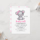 Convite de chá de bebê personalizado com um ursinho / filhote de urso fofo, cortado em rosa feminino.