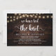 Nós nos casamos, Anúncio de Casamento Simples / Cartão de Convite, em design de Madeira Rústica e Luzes de Corda. Isto é perfeito para a recepção do seu casamento e festa de celebração pós-casamento. Adicione seus detalhes na fonte / letra correspondente.