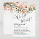 Convite Nós Nos Casamos! Flores Rosadas e Confetes Dourado