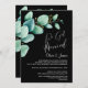 Convide seus amigos e entes queridos para a recepção após o casamento com este convite preto com folhas de eucalipto verde em aquarela para celebrar seu casamento recente.
