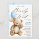 Este convite de chá de fraldas "We Can Barly Wait", macio e caprichoso, apresenta um ursinho pintado de peluche de aquarela segurando bege pastel e balões azuis, perfeito para acolher um pequeno. O retorno de correspondência inclui um código de QR digitalizável para acesso ao registro de presentes. Tonalidades neutras e tons azuis e caligrafia delicada tornam isso ideal para as celebrações de bebês. Uma escolha doce e aconchegante para a floresta, a rústica ou os chás de fraldas modernos.