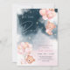 Um convite para Chás de fraldas de ursos de pelúcia. O design de Chá da Bebê Rapariga mostra o texto 'podemos esperar', em uma cor-de-água rosa, salpicando o fundo do céu estrelado com ursos flutuando com balões cor-de-rosa.