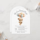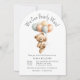 Um tema adorável para um chá de fraldas dar boas-vindas a um menino, este convite apresenta um adorável ursinho de pelúcia com um monte de balões. O tema "Podemos Andar à Espera", em textos brancos, toca no topo do urso bebê. Que fofo! É uma escolha excelente para chás de fraldas no outono. Personalize o modelo de texto simples com os detalhes do seu chá. No verso do convite, outro gráfico adorável mostra o bebê urso segurando uma abóbora de outono com mais balões.