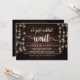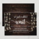Nós simplesmente não conseguimos esperar, Anúncio de Casamento Fuga / Cartão de convite, em design de Luzes de Corda, Madeira de Fazenda Rústica. Isso é perfeito para o seu casamento e festa de celebração pós-casamento. Adicione seus detalhes na fonte / letra correspondente.