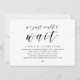 Moderno tema de escrita em preto, cartão de convite de casamento às pressas (Nós simplesmente não conseguimos esperar). É perfeito para a sua recepção de casamento às pressas / festa de celebração pós-casamento. Adicione seus detalhes em fonte / letra preta correspondente.