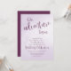 Este convite de casamento, ao estilo tipográfico, foi simplesmente desenhado com a frase "A nossa aventura começa" num script de estilo de caligrafia de ameixa branca com elementos de script coordenados num fundo branco e ameixa tachado - o seu texto personalizado e o lado inverso do convite são a ameixa correspondente - por katz_d_zynes