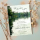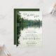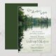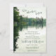 Para a sua celebração de casamento ao lado do lago ou do rio, esta rústica carta de convite para o casamento "Nossa aventura começa", criada da minha própria fotografia pessoal de caiaque e com um sutil efeito de aquarela digital e elementos tipográficos, apresenta uma bela cena natural sob um céu coberto com água levemente ripada, mas calma, refletindo verdes distantes, árvores de cedro e estruturas rochosas - de katz_d_zynes