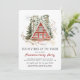 Esses convites de casa nova podem ser personalizados com qualquer texto e também podem ser transformados em anúncios de mudança. Desenho ilustrado à mão com uma cabana de inverno nas montanhas.