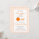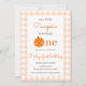 Nosso Pequeno Pumpkin 1rua Laranja Queda Primeiro Aniversário Este lindo design apresenta um tema de abóbora com o fundo laranja de tecido Gingham. Personalize o convite com seus detalhes e se quiser reorganizar o estilo e posicionamento do texto, pressione o botão "Clique para personalizar mais". Para mais produtos do mesmo tema, visite o meu compro: Youtopia Oficial.