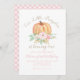 Nosso pequeno aniversário de abóbora convida com abóbora-coloração d'água, flores cor-de-rosa, xadrez rosa e texto brilhante dourado.