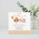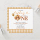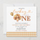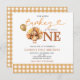 EDITÁVEL Nossa Pequena Turquia Gingham Castanho primeiro aniversario Convite para Elegante Dourado Balão Laranja Castanho Gingham Festa de aniversário