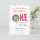 Estes convites de festas de aniversário bonitos apresentam um doce límpido colorido colorido d'água com borda decorativa de bordas de borrifadas. Personalize os convites de festa de aniversário adicionando o nome, a idade e os detalhes da festa do seu filho.