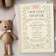 Vire a primeira página de uma celebração mágica com o nosso Convite para Chás de fraldas "Nosso Próximo Capítulo", uma peça maravilhosamente desenhada que se parece com o cobrir de um livro de histórias precioso. Perfeito para honrar a chegada de uma menina, este convite captura a maravilha, a alegria e a entusiasmo de começar um novo capítulo marca na vida. Inspirado por contos clássicos de fadas e livros de histórias antigos, o design ao estilo do cobrir apresenta tons pastéis macios, detalhes florais desenhados à mão e elementos de bebês encantadores que instantaneamente estabelecem um humor quente e caprichoso. O fundo de creme de eterno, folhas verdes delicadas e sotaques de ouro criam uma sensação elegante, mas brincalhona, que funciona para muitos temas sonhentos do chá — de "Nosso Próximo Capítulo" e "Começa Um Novo Capítulo" a "Uma Vez no Tempo". Este convite é perfeito para amantes de livros, pais sentimentais para serem, ou qualquer um que queira um chá de fraldas com um toque de romance de storybook. Imaginem convidados a receber esta design única no correio e a sentirem-se instantaneamente como se estivessem a ser convidados para a cena de abertura de um conto lindo — um em que o personagem principal é o vosso pequeno a caminho. Quer o seu chá esteja estilizado em torno de livros antigos, florais de jardim suave ou uma fantasia de conto de cheio, este convite gravatas tudo perfeitamente. Não é apenas papelaria — é o prólogo de um dia cheio de amor, risos e memórias que durará uma vida inteira.