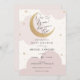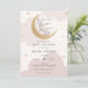 Convite para chá de fraldas com nuvens cor-de-água rosa e estrelas douradas com lua de glória e roteiro divertido "Nosso sonho se tornou realidade" Personalize com suas informações ou clique em "clique para personalizar ainda mais" para ajustar o tipo de fonte, o tamanho e a cor.