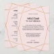Padrão de design de nota de boas-vindas de casamento em rose dourado geométrico.