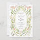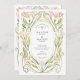 Anuncie seu dia especial com este convite encantador de casamento, maravilhosamente projetado no estilo romântico Art Nouveau. Este cartão fino apresenta uma delicada estrutura aquosa de pêssego mole e lírios cor-de-rosa, com videiras verdes graciosas e girantes criando uma borda simétrica e artística. Seus detalhes personalizados do casamento são apresentados elegantemente dentro de um quadro oval clássico, detalhado com sotaques de ouro falsos para um toque de luxo eterno. Perfeito para uma festa de jardim, uma comemoração de temas antigos, ou para casais que apreciam arte clássica, este convite estabelece um tom realmente gracioso e memorável.