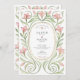 Celebre sua união com este maravilhoso convite de casamento, uma obra-prima do design Art Nouveau. Esta carta elegante apresenta uma bela ilustração aquosa de lírios cor-de-rosa delicados, rodeados de vinhas verdes graciosamente girando numa composição perfeitamente simétrica. Seus detalhes personalizados do casamento são mostrados dentro de uma sofisticada estrutura oval, destacada com sotaques de ouro falsos por um toque de martelo. A sensação romântica, artística e eterno deste convite faz dele uma escolha ideal para um casamento de jardim, uma celebração inspirada em vintage, ou para qualquer casal com amor pela arte clássica. Todo texto é totalmente personalizável para anunciar seu dia especial de forma elegante.