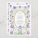 Convide seus hóspedes no estilo de tirar o fôlego com este elegante convite de casamento Art Nouveau. Uma graciosa borda de aquarela pintada à mão apresenta lindas flores em tons encantadores de lavanda, azul-piscadela e roxo rico. O intricado design floral, repleto de vinhas verdes e folhagem em espiral, inspira-se na arte clássica Art Nouveau. Uma sofisticada estrutura oval de ouro falsa adiciona um toque quente e lustroso, que envolve perfeitamente os detalhes do seu casamento. O verso oferece um design coordenado, que oferece um espaço dedicado para "Os detalhes mais finos" para compartilhar informações extras com seus convidados. Este convite é ideal para um primavera, jardim, vintage ou casamento artístico.
