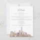 Este cartão de detalhes do casamento apresenta uma pintura aquosa da lindíssima linha do horizonte de Nova Iorque. Edite com facilidade o texto *maioria* para atender às suas necessidades de eventos. Altere a cor de fundo e adicione a sua própria fotografia à parte de trás, se preferir.