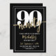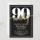 Introduzindo um convite de aniversário simples e moderno, perfeito para celebrar esse marco no estilo. O elegante design apresenta um fundo preto em negrito com um "90" proeminente no topo. Abaixo, "Noventa" é escrita elegantemente na caligrafia, acrescentando um toque de sofisticação. O texto em todo o convite combina uma mistura de fontes simples modernas e escritas em branco e ouro, criando um contraste impressionante contra o pano de fundo preto. Um quadro branco limpo ao redor da borda completa o design com um toque de elegância. Este convite é ideal para uma comemoração de 90 e chic. Por favor, note que os elementos dourados são falsos, sem folha de alumínio ou cinza. A cor de fundo, as fontes e o quadro podem ser personalizados para corresponder ao seu estilo. O Elegante Convite de aniversário Moderno Celebra A Noventa Com Este Branco Dourado Na moda Negro. Disponível como um convite impresso ou como um convite digital para download que você pode enviar por e-mail ou que foi impresso localmente!