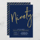 Convite Noventa | Festa de aniversário 90 azul Dourada e M