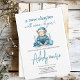 Celebre a chegada do seu pequeno com este adorável convite do "Novo Ursinho de Capítulo Azul Chá de fraldas". Apresentando um encantador design de ursinho de pelúcia em tons azuis suaves, este convite dá o tom perfeito para um chá de fraldas alarmante. O bonitinho urso, cercado por detalhes brincalhões, evoca um sentimento de calor e entusiasmo, fazer que seja a escolha ideal para o chá de fraldas de um menino. Com as suas cores gentis e o tema de convite, este convite para chás de urso é uma maneira maravilhosa de dar as boas-vindas aos convidados e marcar o início de um belo novo capítulo na sua vida!