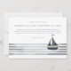 Embarque na sua jornada para confundir a felicidade com este encantador convite para o casamento estilo New England. Apresentando uma vela navegando graciosamente em faixas náuticas em cinzas azuis mudas, este convite captura a atração eterno da vida costeira. A parte de trás do cartão é enfeitada com uma imagem de papel de papelão, evocando o encanto russo da Nova Inglaterra.