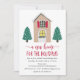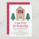 Convide convidados para a sua festa virtual de inauguração em estilo com o nosso convite para as Férias da Nova Casa. O convite para o aquecimento das casas no inverno mostra uma casa ilustrada coberta de neve com pinheiros e tipografia manuscrita em um esquema de cor bege e vermelha. Personalize os convites para o aquecimento doméstico adicionando a data e a hora do evento, o link do evento, etc. O verso exibe um design vermelho e branco pontilhado.