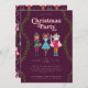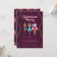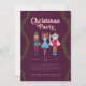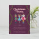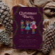 Cartão de convite de festas de janto Whimsical e moderno de Natal, com ilustração desenhada à mão de personagens balés de um cão, de um gato e de um rato.