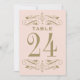 Cartões de números da mesa de casamento do estilo Vintage apresentam espirais decorativas e floresces em ambos os lados da carta. Pasta pálida, cor-de-rosa e esquema antigo de cor dourada. Personalize cada placa de número de tabela de que você precisa e adicione cada uma ao seu carrinho individualmente.