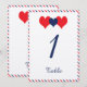 Este lindo projeto de casamento, chamado Americana Hearts Wedding, tem um divertido design inspirado no patriotismo. O fundo é branco com listras diagonais vermelhas e azuis. No centro, há uma área branca para o seu texto. No topo, há três corações - em vermelho e azul. No convite, eles são configurados para suas iniciais ou monograma. Isso seria perfeito para um casamento militar, patriótico ou do dia 4 de julho. Este conjunto inclui convites, cartões de aviso prévio, cartões de resposta, cartões de agradecimento, cartões de número de mesa, selos de envelope, rótulos de vinho, pastas, rótulos de endereço de devolução e muitos outros itens de papelaria para o dia do casamento, brindes e presentes disponíveis. Use os adesivos de selo de envelope para qualquer um dos seus presentes DIY - eles estão disponíveis em tamanhos grandes e pequenos! Todos os elementos são impressos em nossos produtos de alta qualidade, eles não incluem ouro real, joias, relevo ou outros elementos têxteis. Todos os designs são de propriedade exclusiva