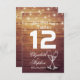 Modelos de Lugar de Assento de Casamento / Número da Mesa / Cartão de Acompanhamento - Letra Elegante, Copos de Champanhe Vintage e Luzes de Corda em Fundo de Madeira Rústica.