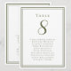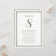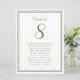 Nosso número de mesa de casamento 16,5 cm x 22,2 cm com lista de convidados apresenta um modelo para o número da mesa e lista de convidados na mesa. Personalize a letra elegante e o script com os nomes dos seus convidados e detalhes em verde-oliva rústico em um fundo branco crocante. Adição perfeita para um casamento, aniversário ou grande festa de noivado. O lado reverso é uma duplicata da frente, permitindo uma fácil visualização de ambos os lados. Solicitação de cor personalizada aceita.