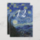 Cartão de número de mesa de recepção de casamento colorido, com a pintura de arte fina de Noite Estrelada de Vincent van Gogh. Personalize o número branco para cada mesa na sua recepção. Produtos de casamento correspondentes estão disponíveis.