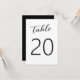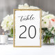 Tipo de letra com letra casual, com pontos nas extremidades para o título de "mesa". Personalize a cor, o tamanho e o posicionamento da fonte para se adequar ao seu evento. A cor de fundo e o backer também são personalizáveis ou adicionam uma foto.