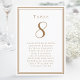 Nossa lista de convidados do número da tabela de casamento de tendência apresenta um modelo para o número da tabela e a lista de convidados na mesa. Personalize a elegante inscrição e o roteiro com os nomes e detalhes de seu convidado em marrom rústico em um fundo branco nítido. Adição perfeita para um casamento, aniversário ou grande festa de noivado. O verso é uma duplicata da frente que permite uma visualização fácil de ambos os lados. Solicitação de cor personalizada aceita.
