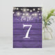 Convite Número da Tabela das Luzes Roxas Roxas Rústicas