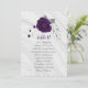 quadro de assentos personalizável elegante número da tabela de cartões flores roleais roxas com algumas cinzas prateadas folhas número da mesa