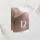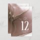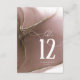 Um fundo de abstrato que lembra a tinta líquida em tons das profundezas esticadas através do rosa e branco esbranquiçados é o pano de fundo para elegantes textos manuscritos e layouts modernos de design nos pedaços desta bela suíte de casamento. A placa de número da tabela de casamento mostrada aqui apresenta o acima e uma modelo para adicionar suas próprias informações pertinentes sobre o evento. Procure ID762 para ver todas as peças de coordenação neste conjunto.