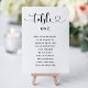 Os modernos cartões de número preto e branco (as cores podem ser modificadas) da mesa de casamento apresentam um design de tipografia na moda negra com script de caligrafia e sotaque cardíaco. O texto personalizado simples e elegante que pode ser personalizado com o número da tabela e os nomes de convidados sentados nessa mesa específica. Personalize e adicione cada placa de número de tabela individual necessária (1, 2, 3... e assim por diante) ao seu carrinho de compro.